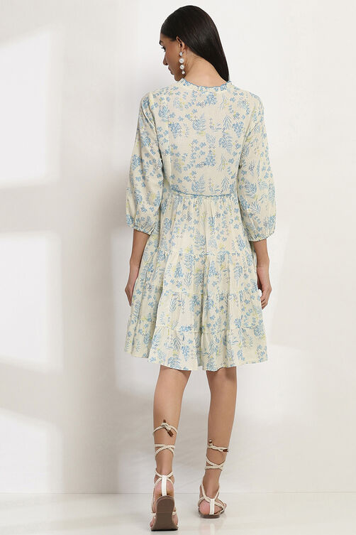 Blue Printed Tiered Dress