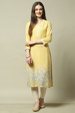Yellow Floral Printed Straight Kurta