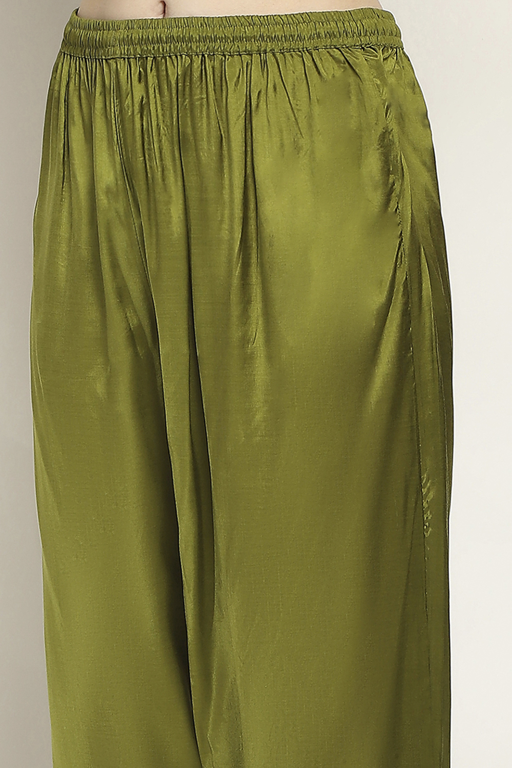 - Solid straight palazzos with bordered hems offer subtle detail and come with an elastic waistband for all-day ease and comfort