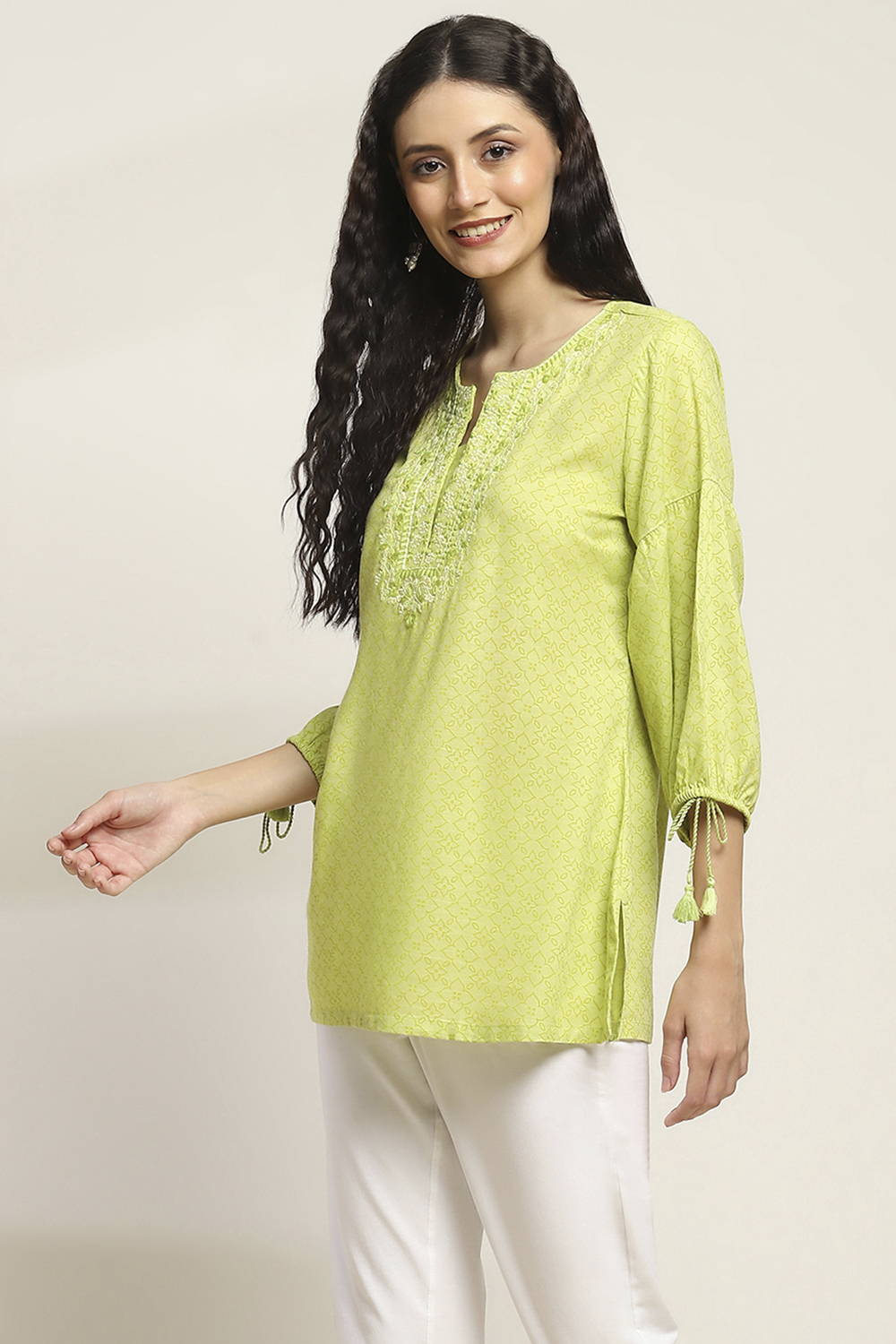 Lime Green Viscose Rayon Straight Kurti