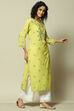 Lime Yellow LIVA Straight Printed Kurta
