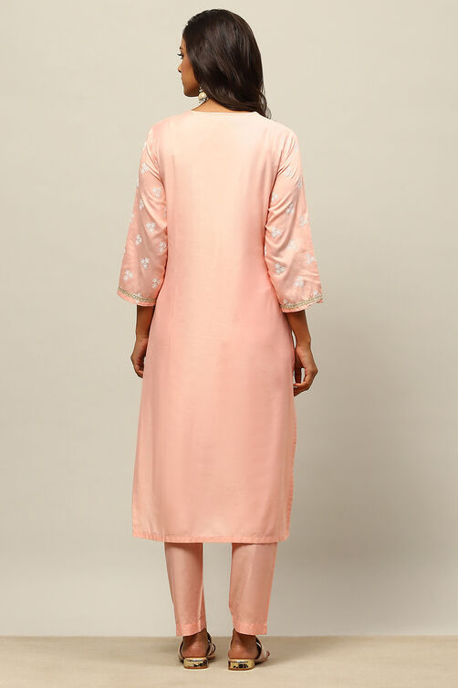 Pink Viscose Muslin Straight Printed Kurta Palazzo Suit Set