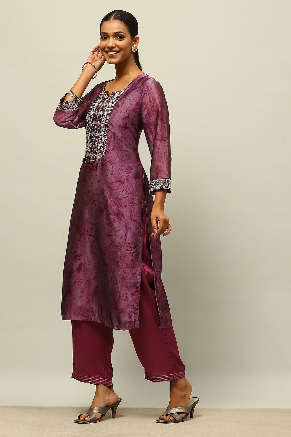 Purple Poly Georgette Straight Printed Kurta Palazzo Suit Set